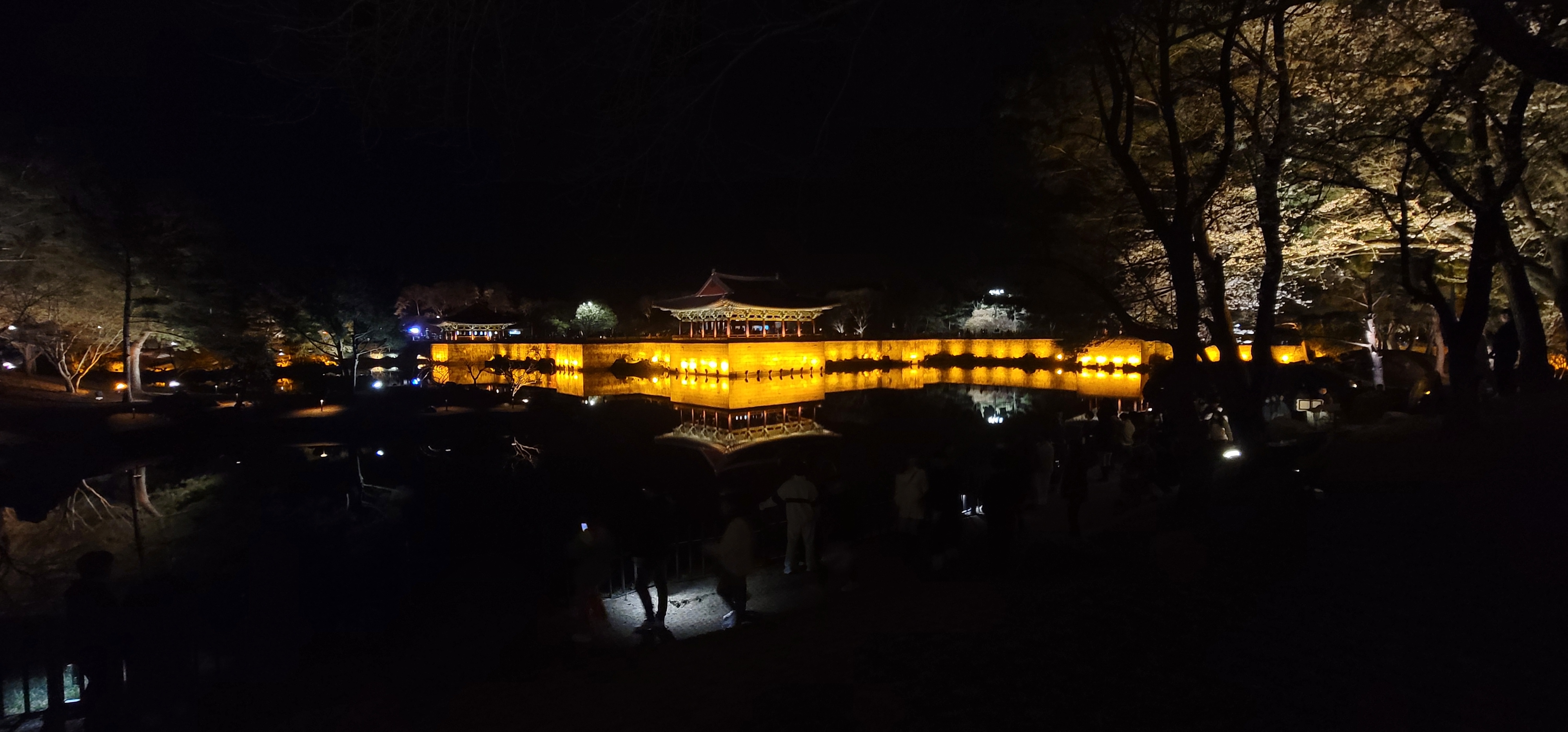 문화재들이 웅장하고 밤인데도 빛드리 춤을