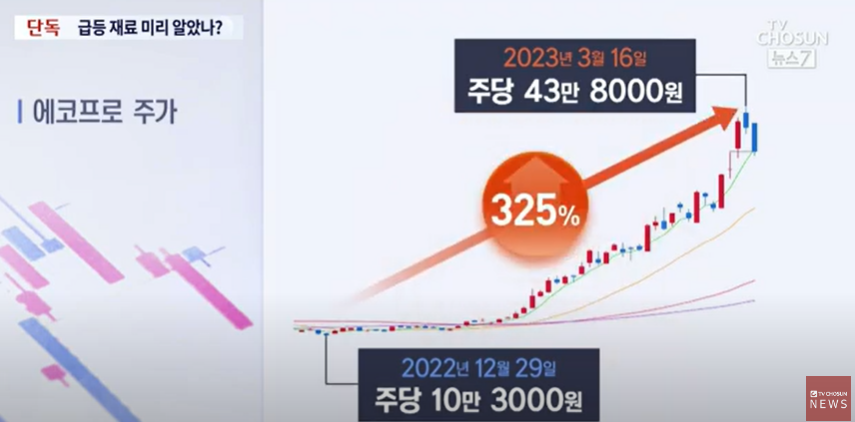 3월16일 주당 43만원으로 325%나 뛰었습니다.