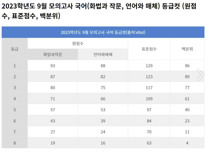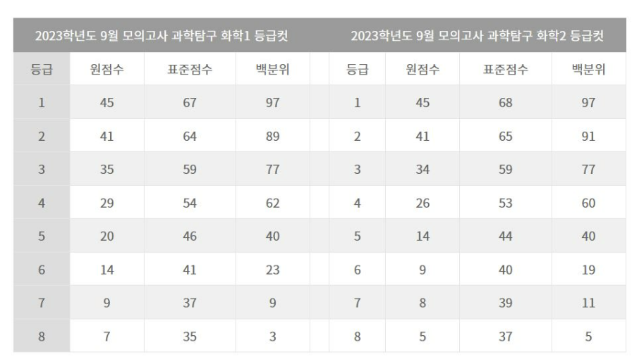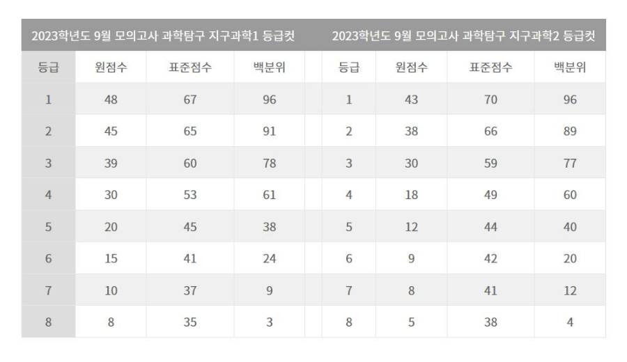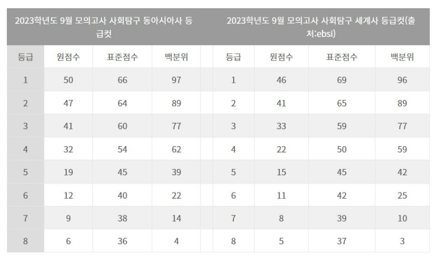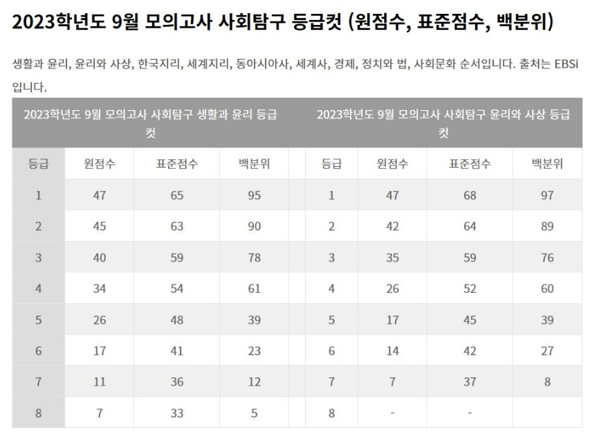 이상~ 2023년 9월 모의고사 과목별 등급컷이였습니다.