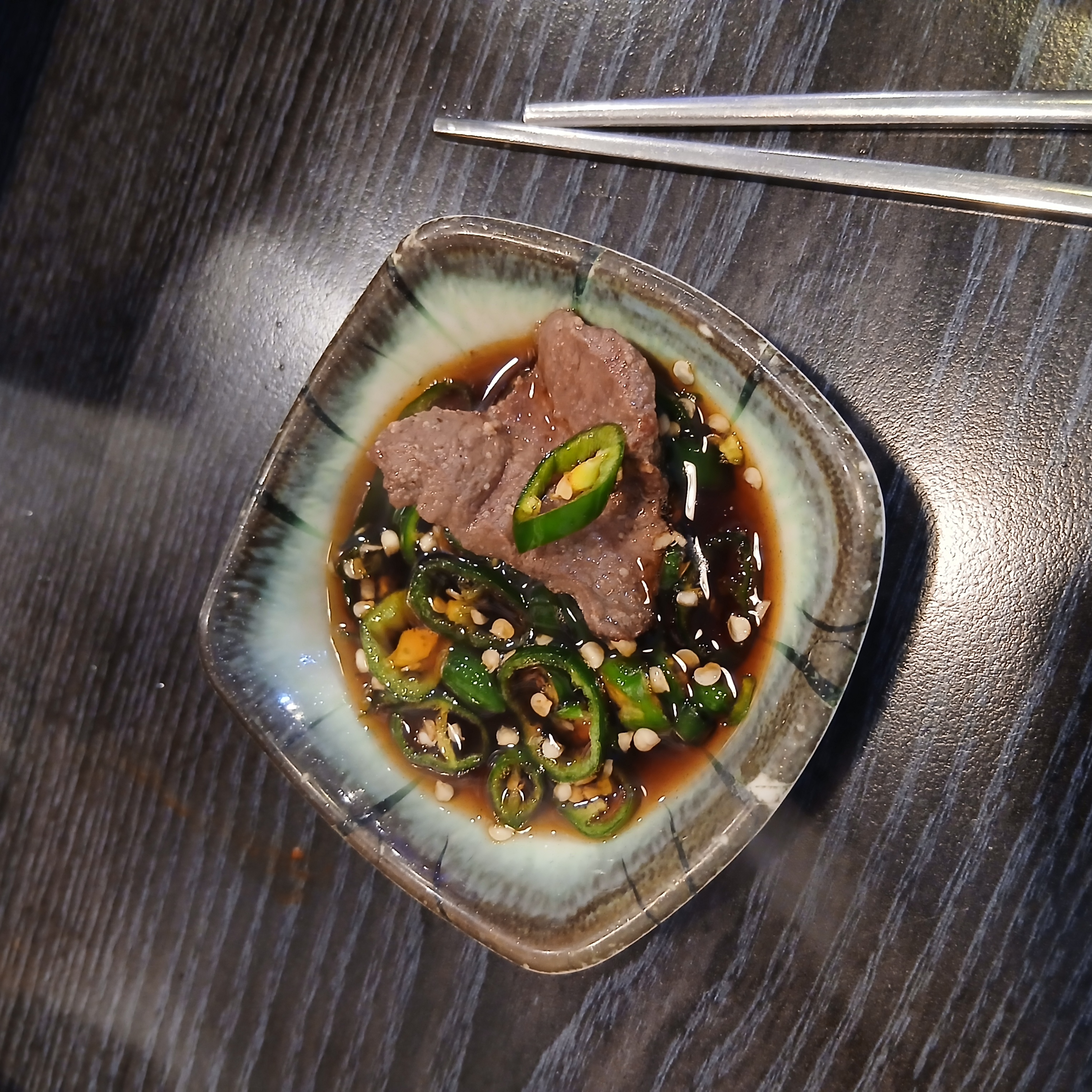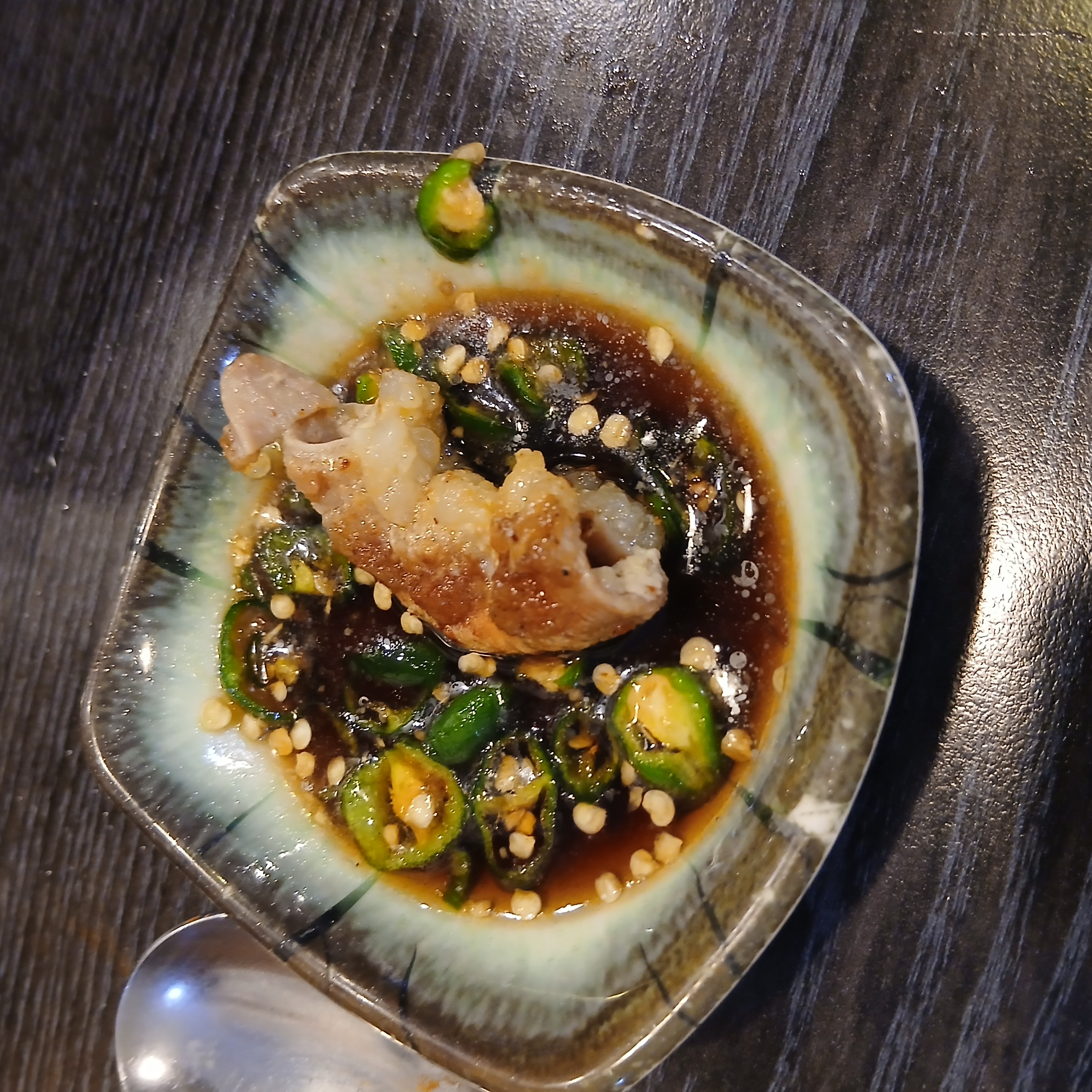 대창 : 기름진 풍미가 진하게 느껴지는 부위로, 청양고추 간장소스와 환상궁합.