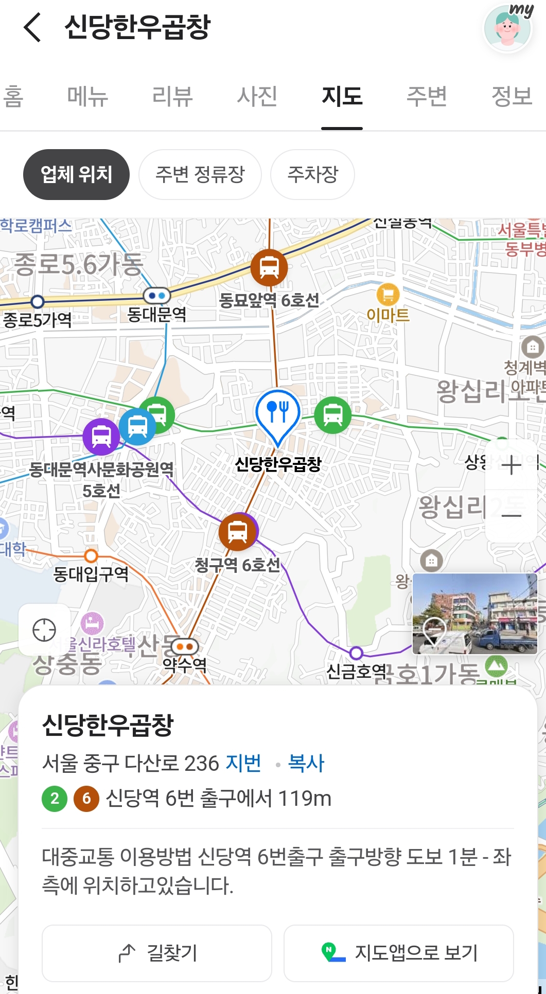 위치 : 신당역 6번 출구에서 도보 1분 (119m 거리)