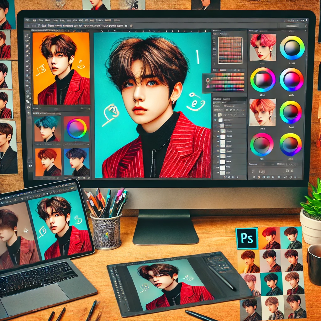 특정 아이돌 콘셉트에 맞춘 색감 조정법, 피부 보정, 배경 편집 방법 등 팬들이 좋아할만한 주제를 다룰 수 있습니다.