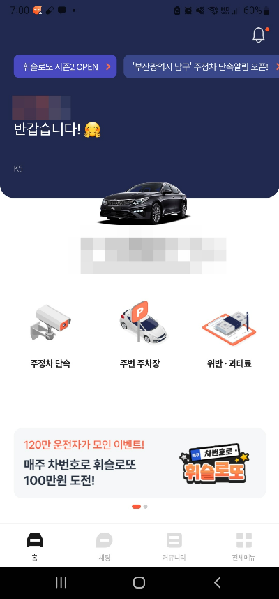 앱 설치 후에 자신의 차량번호만 적으면 바로 각종 알림과 정보를 무료로 이용가능합니다.