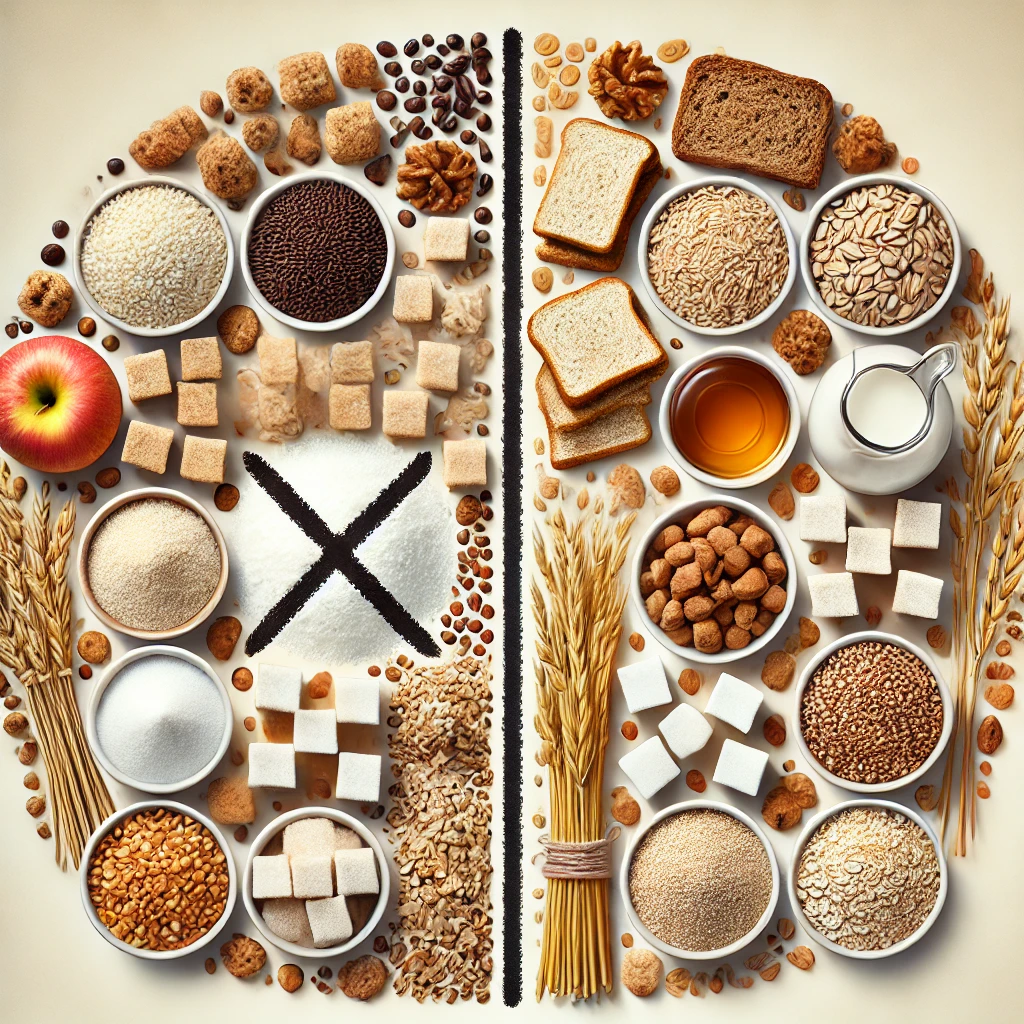 ✅ 정제 탄수화물(흰쌀, 흰 밀가루, 설탕) 배제