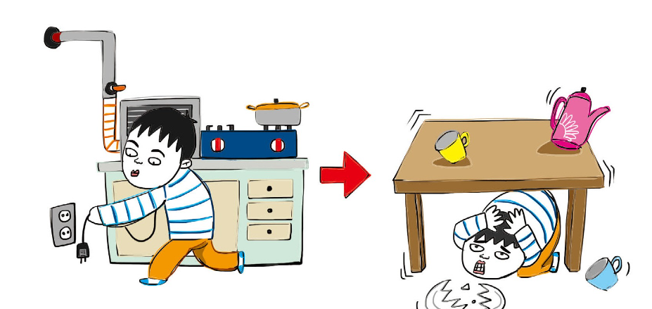 · 흔들림이 멈춘 후 당황하지 말고 화재에 대피하여 가스와 전깃불을 끕니다.