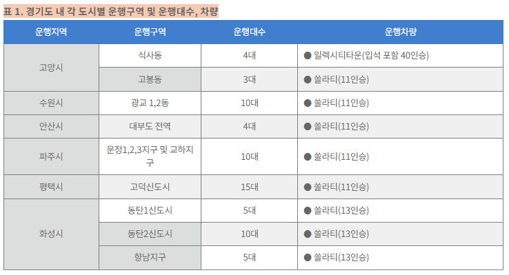 승객의 호출에 대흥해 탄력적으로 승객을 수송하는 맞춤형 대중교통 수단이다.