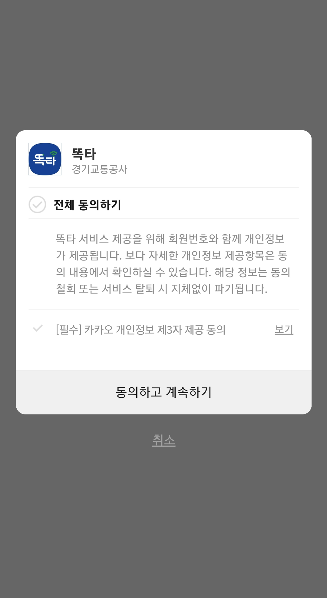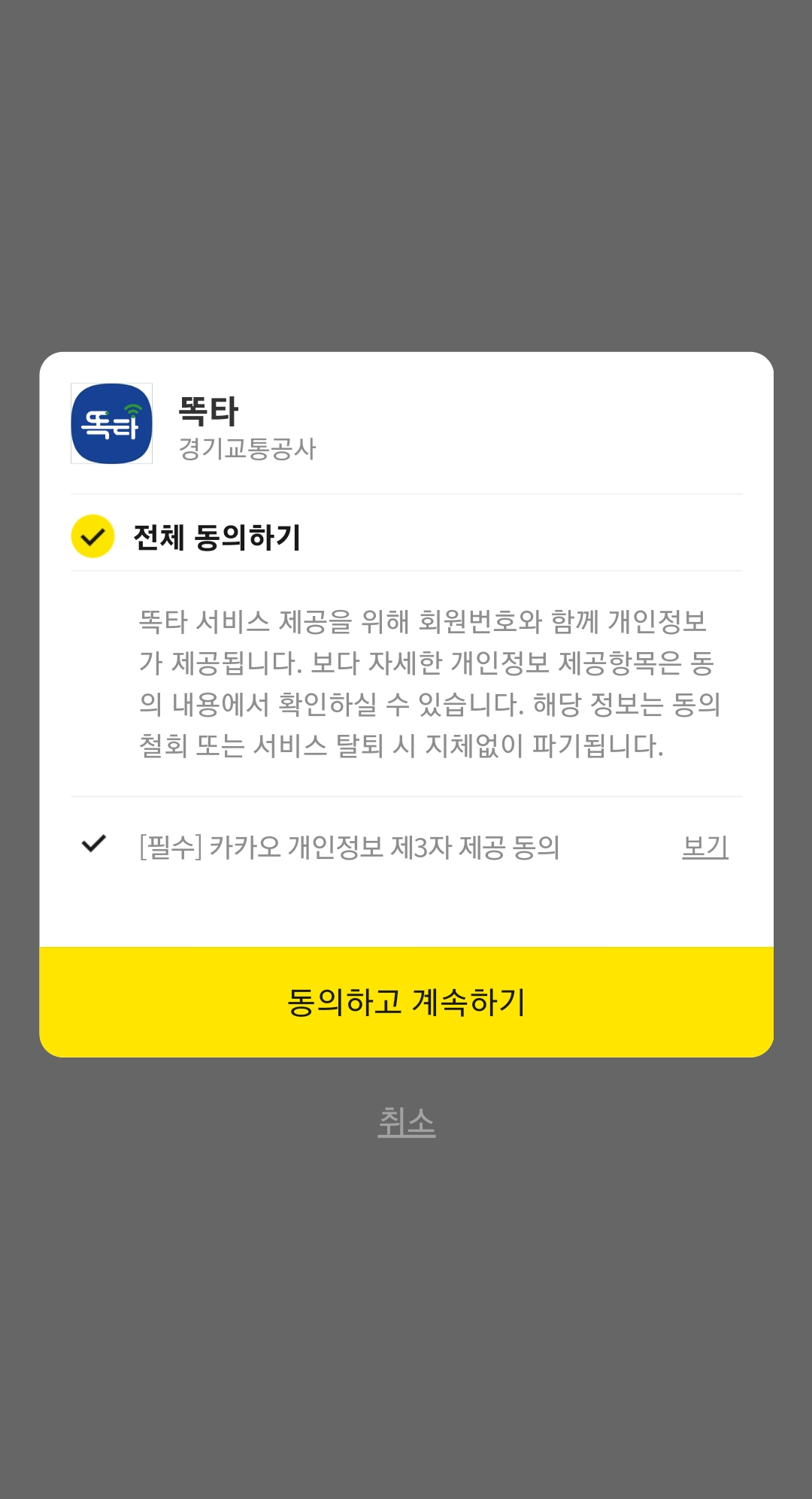 똑버스와 똑타를 이용하기 위해서는 어플리케이션에서만 가능합니다.