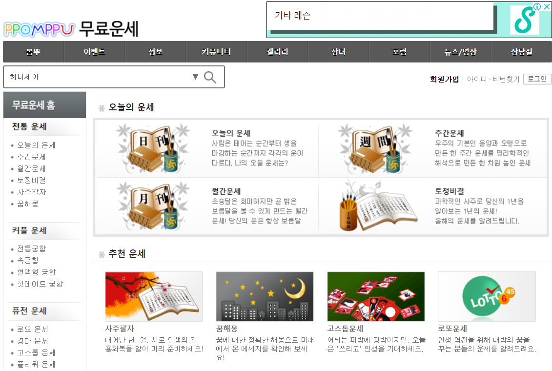 마지막으로 소개시켜드릴곳은 뽐뿌 무료운세인데요.