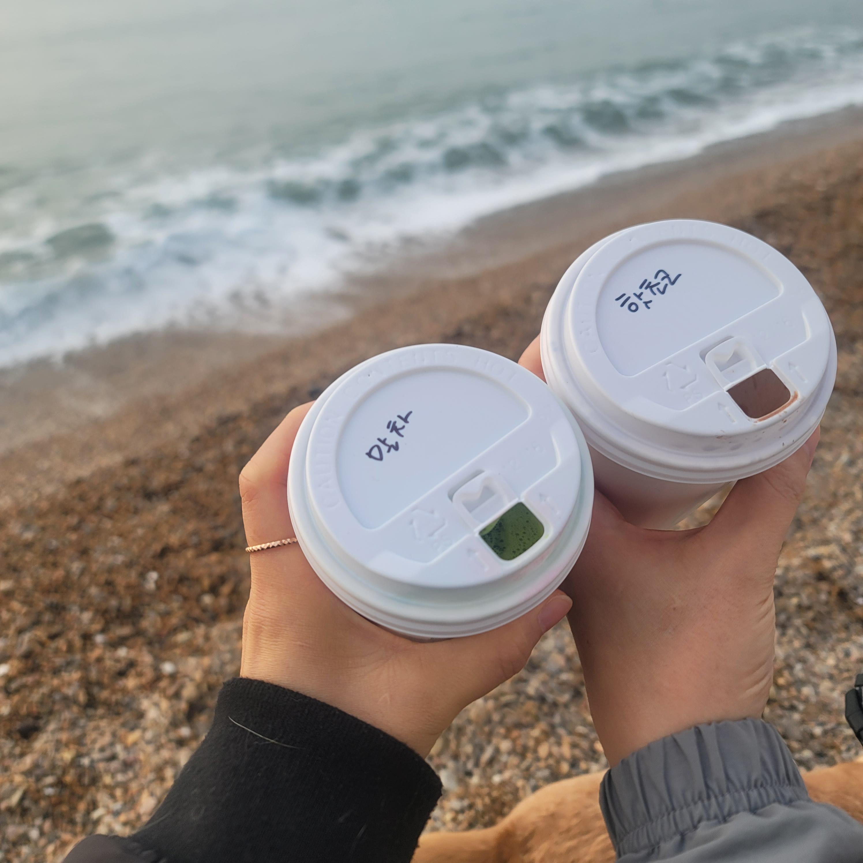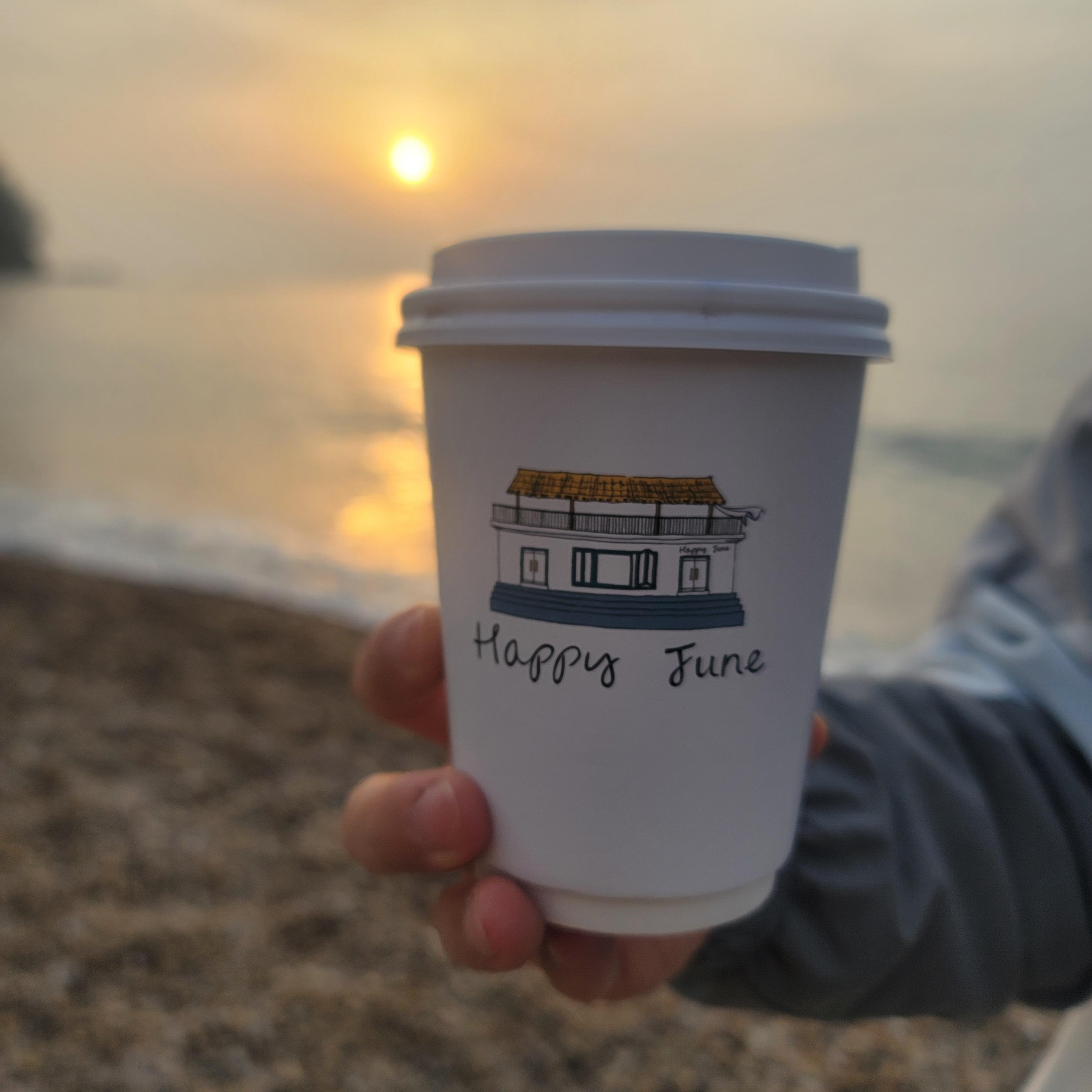 테이크아웃잔에 해피준 카페 그림이 🎨 🖼