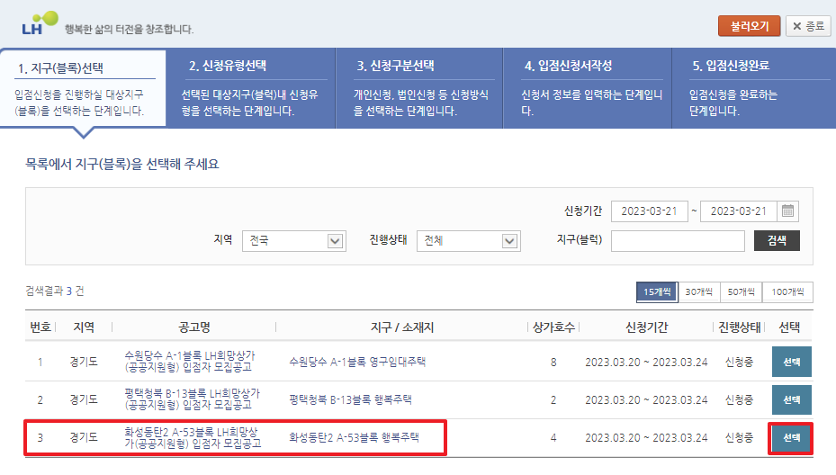 5. 화성동탄2 A-53블록 행복주택 클릭