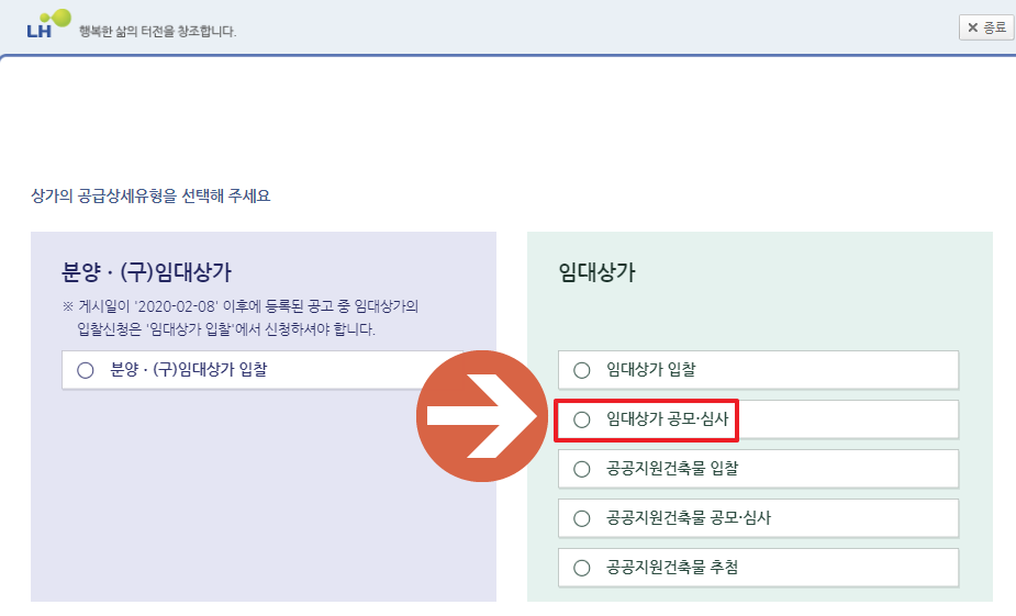 3. 상가 공고지원 건축물 -> 청약신청하기 눌러줍니다.