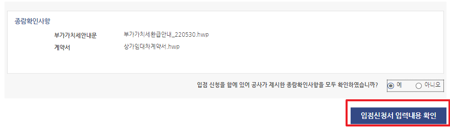 11. 입점 신청서 입력내용 확인을 누르면 다음 탭으로 이동합니다.